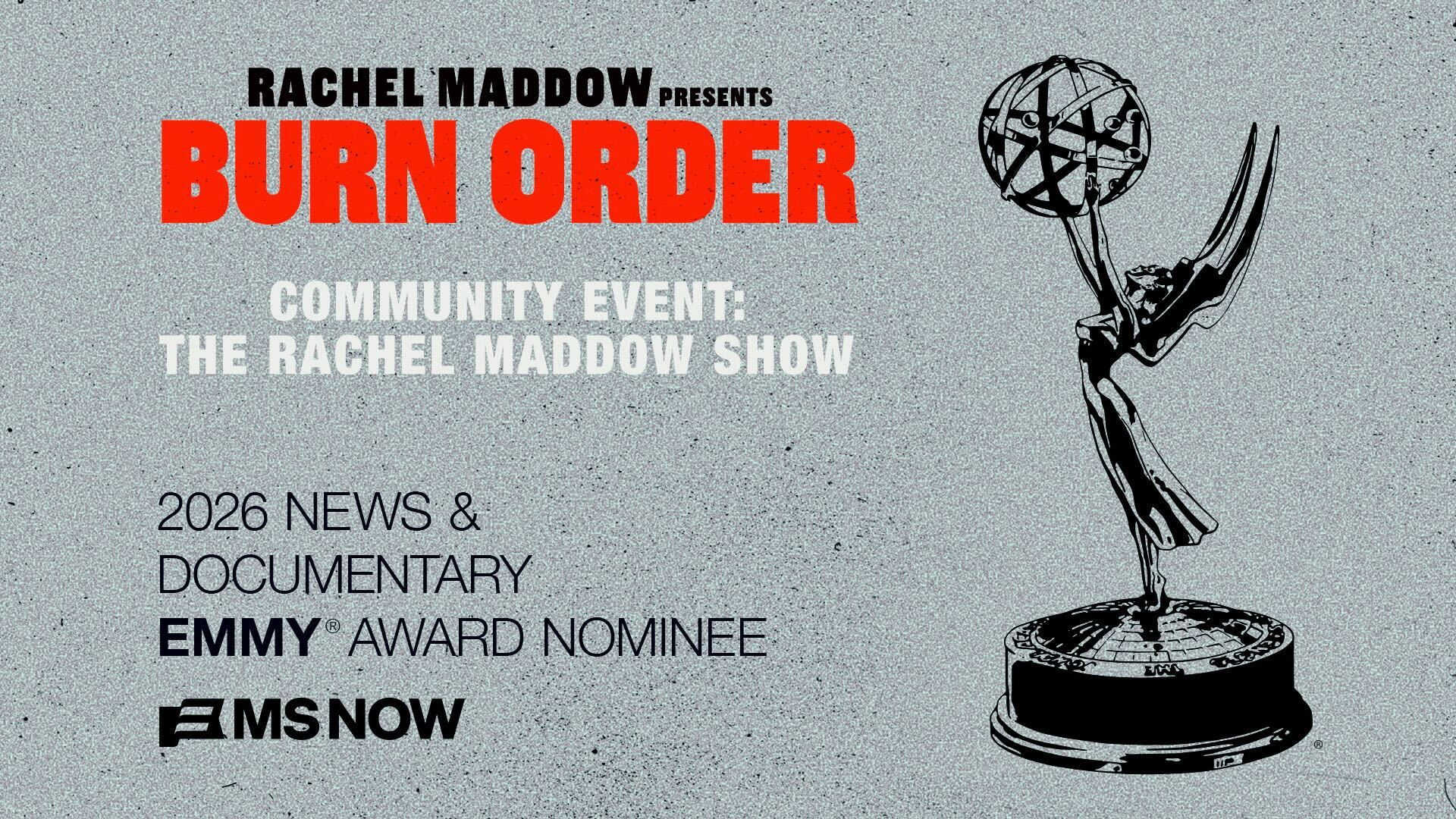 You can catch up on all of the episodes, as well as supplementary material, the audio of the now-Emmy award nominated community event, and even a book list at MS.NOW/BurnOrder.